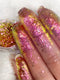 Color Flake rosa con visos amarillos y verde.